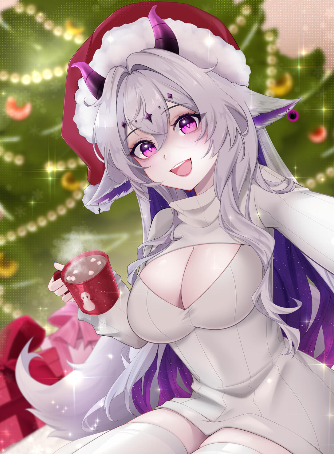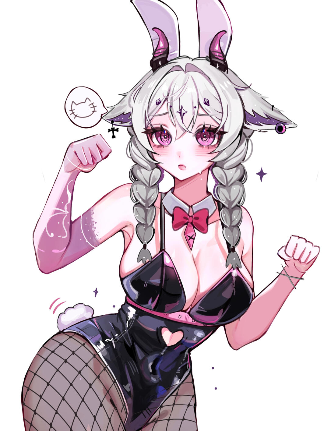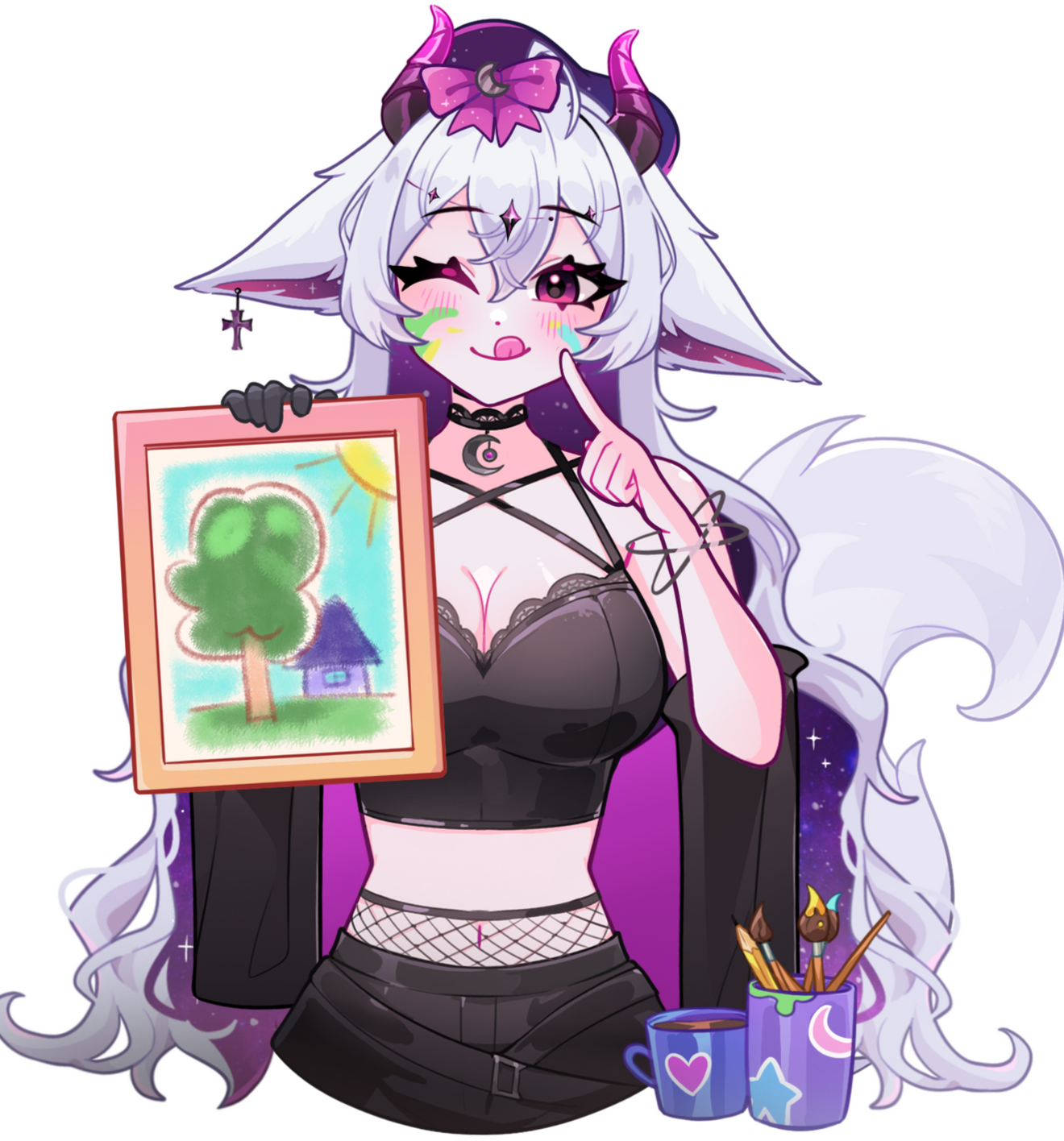 Doch ich wusste, dass ich nicht auf der Erde bleiben konnte, wenn ich weiterhin in meiner göttlichen, chaotischen Form existierte. Also traf ich eine Entscheidung, die selbst für eine Göttin von solcher Macht schwerwiegend war. Ich legte meine ursprüngliche Gestalt ab und nahm die Form eines Menschen an. Meine Ohren verwandelten sich in die spitzen, geschmeidigen Ohren eines Fuchses, und ein weicher Fuchsschwanz wuchs aus meinem Rücken. Doch ein Teil meines wahren Wesens konnte nicht vollständig verborgen bleiben: Mein rechter Arm blieb vom leuchtenden Chaos durchzogen, ein Überbleibsel der ungezähmten Macht, in dem das Chaos noch immer pulsierte.So lebe ich nun als Mensch auf der Erde, verborgen unter den Sterblichen, doch stets begleitet von Kyuma, der den leuchtenden Halbmond mit sich trägt. Dieser kleine Talisman erinnert mich daran, dass es mehr als nur Zerstörung gibt, dass es auch in der dunkelsten Nacht Schönheit gibt.Solange das Mondlicht in Kyumas Halbmond erstrahlt, kann Cleo das Chaos in ihrem Inneren in Schach halten und die Erde als Teil dieser stillen, nächtlichen Welt betrachten, die sie einst vernichten wollte, aber nun zutiefst liebt.