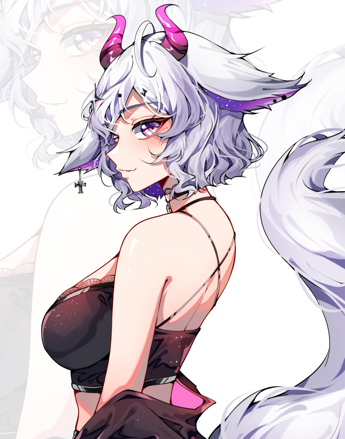 Doch ich wusste, dass ich nicht auf der Erde bleiben konnte, wenn ich weiterhin in meiner göttlichen, chaotischen Form existierte. Also traf ich eine Entscheidung, die selbst für eine Göttin von solcher Macht schwerwiegend war. Ich legte meine ursprüngliche Gestalt ab und nahm die Form eines Menschen an. Meine Ohren verwandelten sich in die spitzen, geschmeidigen Ohren eines Fuchses, und ein weicher Fuchsschwanz wuchs aus meinem Rücken. Doch ein Teil meines wahren Wesens konnte nicht vollständig verborgen bleiben: Mein rechter Arm blieb vom leuchtenden Chaos durchzogen, ein Überbleibsel der ungezähmten Macht, in dem das Chaos noch immer pulsierte.So lebe ich nun als Mensch auf der Erde, verborgen unter den Sterblichen, doch stets begleitet von Kyuma, der den leuchtenden Halbmond mit sich trägt. Dieser kleine Talisman erinnert mich daran, dass es mehr als nur Zerstörung gibt, dass es auch in der dunkelsten Nacht Schönheit gibt.Solange das Mondlicht in Kyumas Halbmond erstrahlt, kann Cleo das Chaos in ihrem Inneren in Schach halten und die Erde als Teil dieser stillen, nächtlichen Welt betrachten, die sie einst vernichten wollte, aber nun zutiefst liebt.